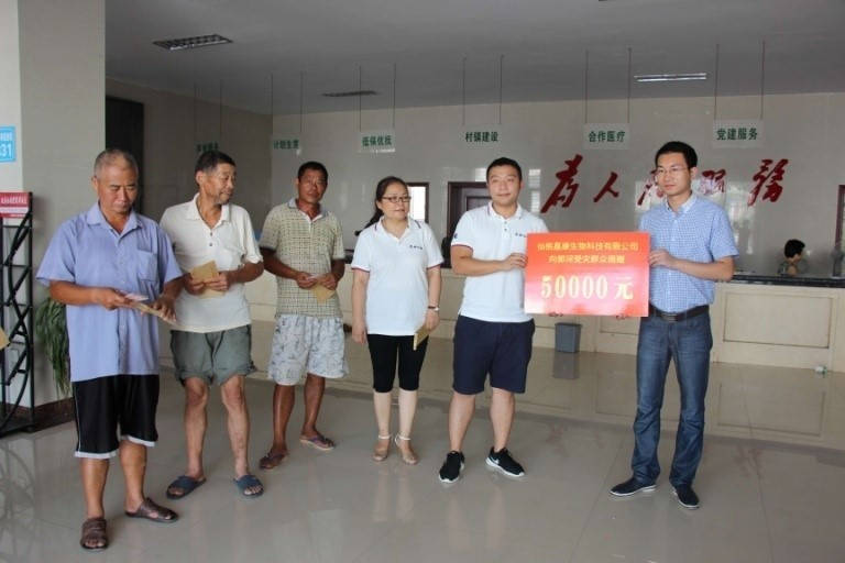 2016年8月11日上午,仙桃嘉康生物科技有限公司在郭河鎮(zhèn)便民服務(wù)中心向郭河鎮(zhèn)受災(zāi)養(yǎng)殖戶進(jìn)行捐款。今年5月份以來,湖北省經(jīng)歷了60年一遇的洪水災(zāi)害,廣大水產(chǎn)養(yǎng)殖戶損失慘重,仙桃嘉康生物科技有限公司陳瑞文經(jīng)理、總經(jīng)辦李翠茹主任代表嘉康公司向郭河鎮(zhèn)受災(zāi)養(yǎng)殖戶捐款人民幣五萬元,希望受災(zāi)養(yǎng)殖戶積極展開生產(chǎn)自救,早日重建家園。